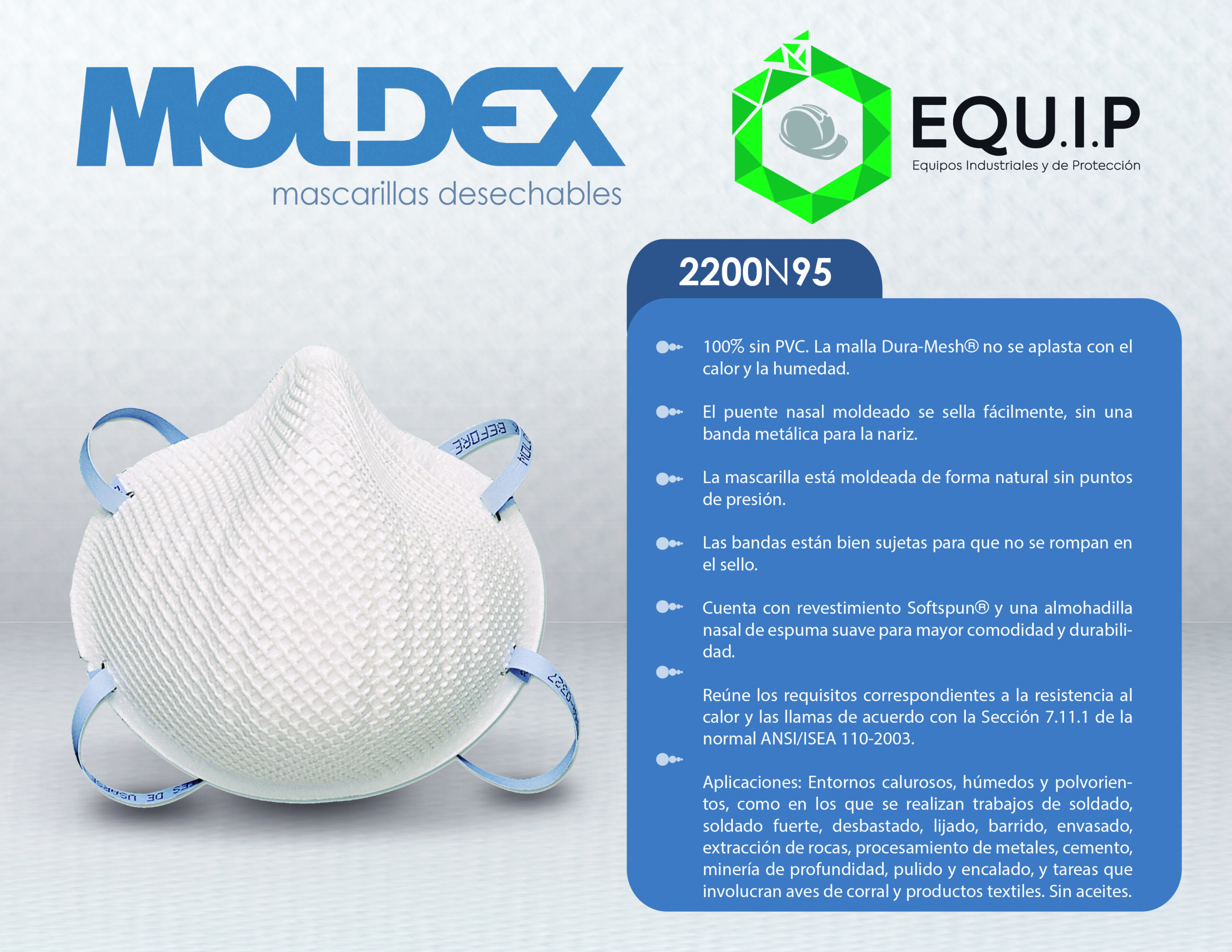 Descripción: 100% sin PVC. La malla Dura-Mesh® no se aplasta con el calor y la humedad. El puente nasal moldeado se sella fácilmente, sin una banda metálica para la nariz. La mascarilla está moldeada de forma natural sin puntos de presión.