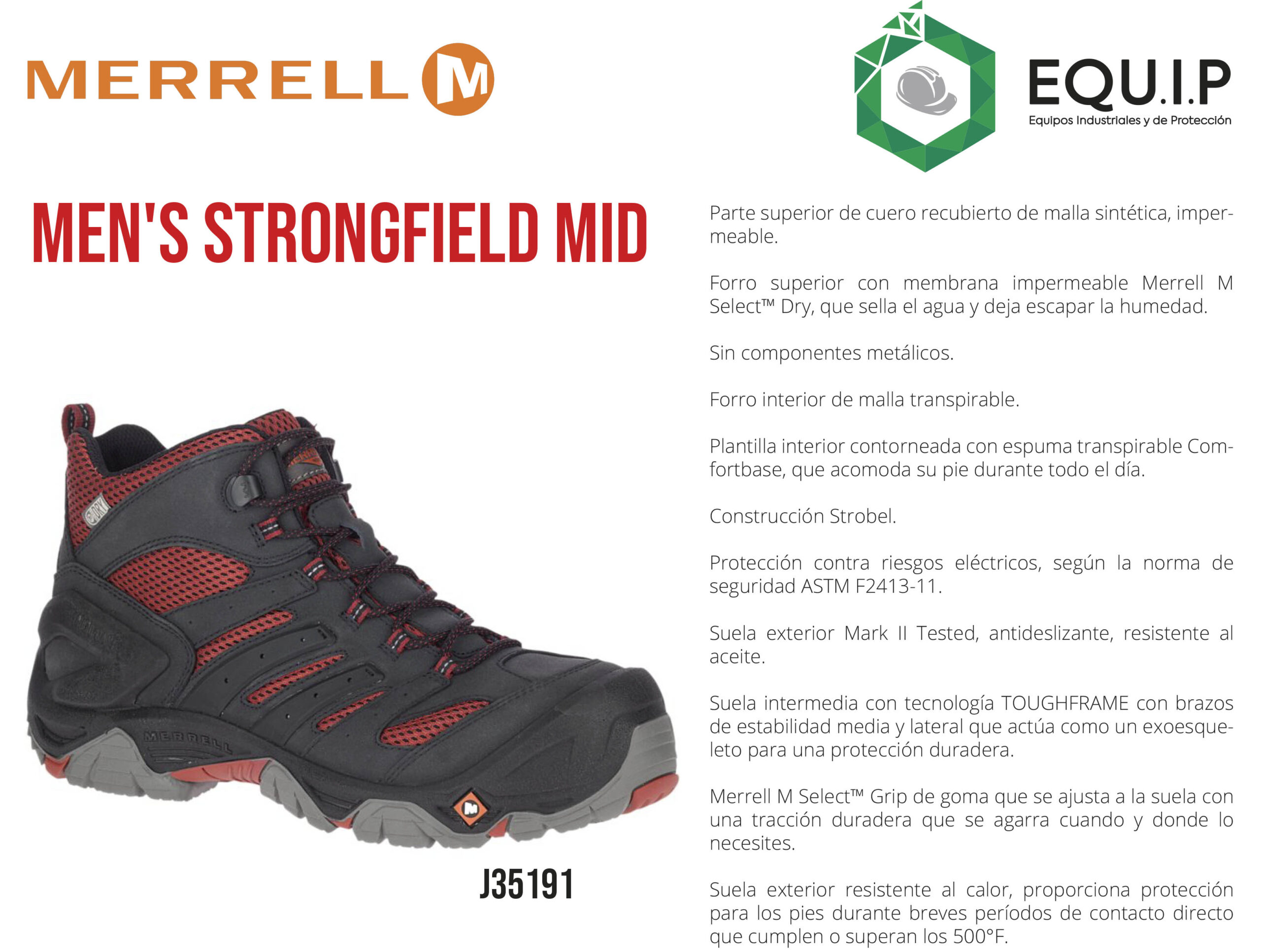 Descripción: Parte superior de cuero recubierto de malla sintética, impermeable. Sin componentes metálicos. Plantilla interior Comfortbase, que acomoda el pie durante todo el día. Suela exterior mark II Tested, antideslizantes resistente al aceite y altas temperaturas.